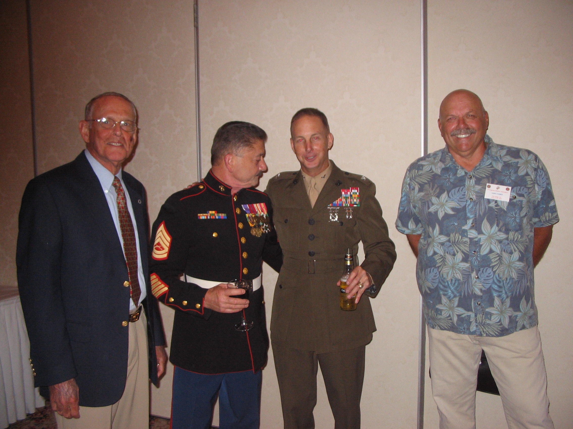 Left Col. Ted Zealley, Gunny Mike Sidotti, Col. Brian Hearnsberger, Major Harry Parmer during cocktail hour.