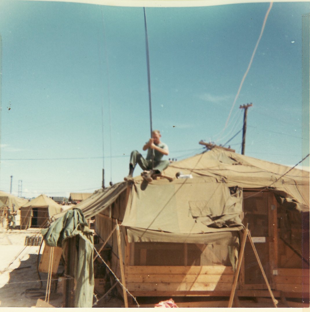 Unknown 9th Engineer installing communications antenna in June 1966. I believe the Marine in the photo is Earl Cantwell from Texas (Posted by Fred Tidwell)