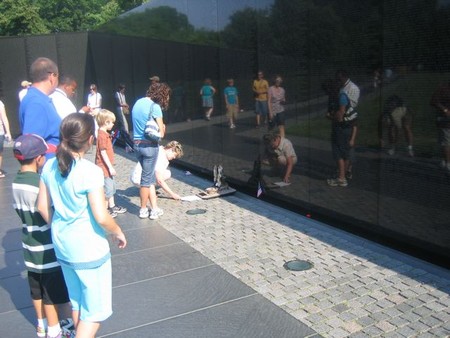 Memorial boots and dogtags left at the wall. Dog tags made of all of 9th Eng. KIA's and placed on the boots with a plaque and letter. Memorial was made by Larry "Frenchy" Roberge and left at the wall by Bob Nilsson.